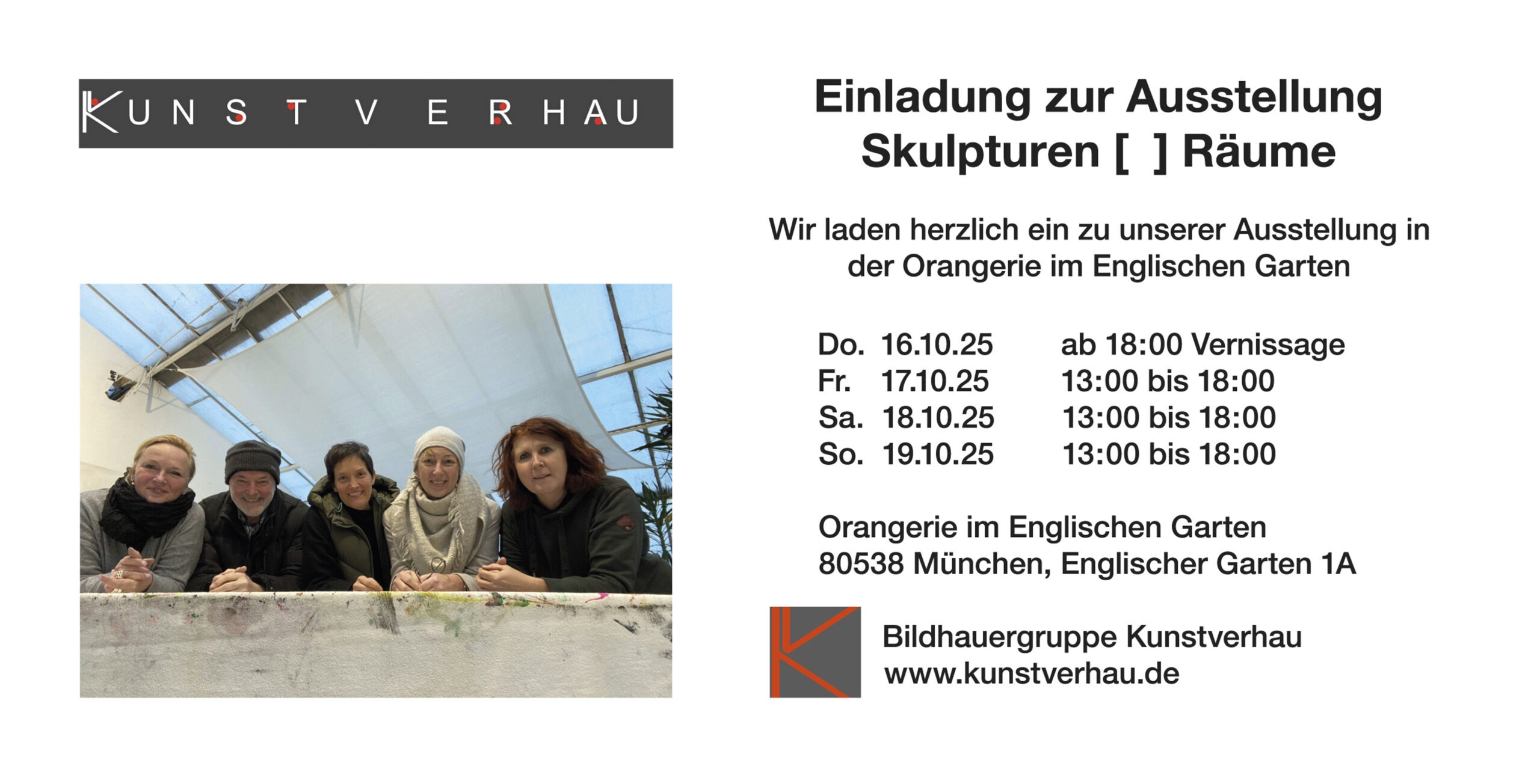 Einladung zu unserer ersten gemeinsamen Kunstverhau-Ausstellung im Sardenhaus im Westpark, München Do. 17.10. / Sa. 19.10. / So. 20.10.2024 |
