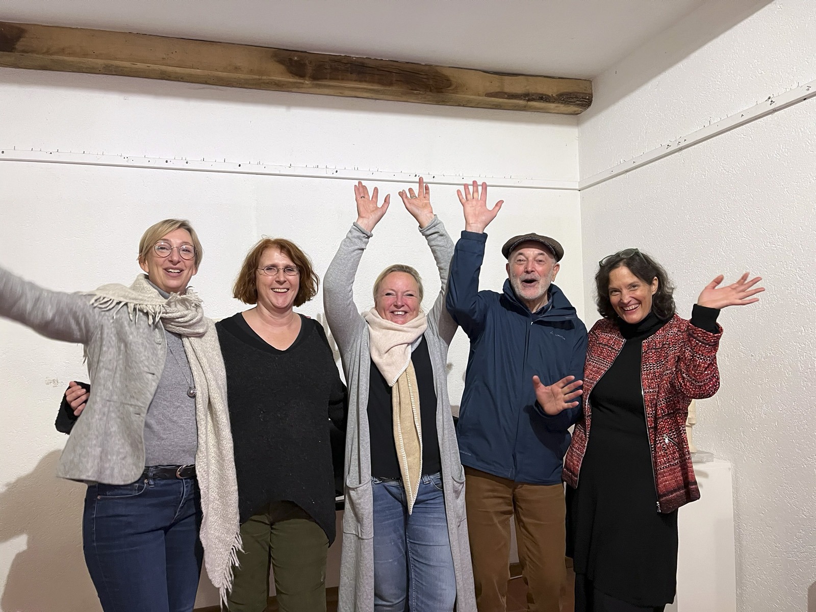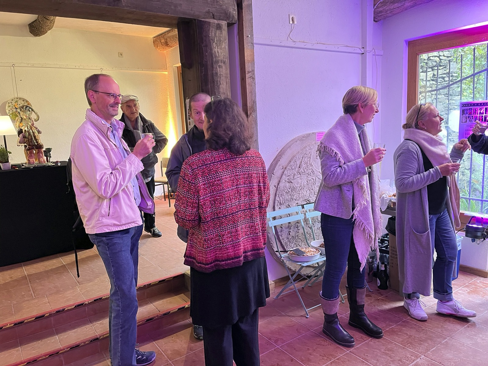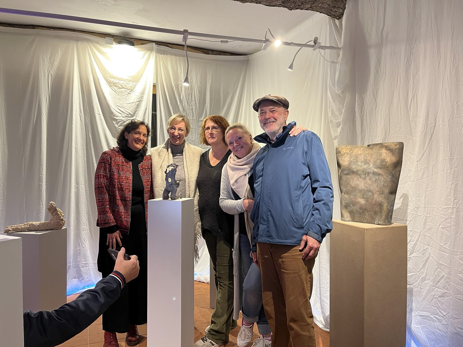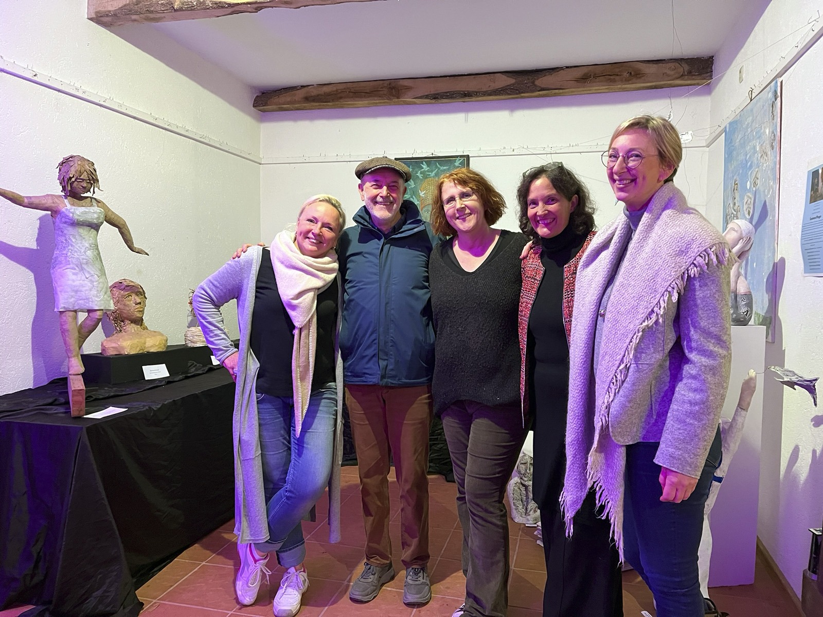 Fünf eigenständige und unterschiedliche Künster:innen. In der Gruppe Kunstverhau ist gerade darum Raum für Anregung und Resonanz. Und mit dieser Resonanz kann – wie wir heute sehen können – auch in der grobstofflichen Welt Wirkung entstehen: Dieser phantastische Ausstellungsraum für Skulpturen:Räume steht uns offen, wir haben Licht, die Sockel sind herangetragen, Schweiß ist geflossen, Plakate und Einladungen haben sich materialisiert, wir haben Essen und Trinken und wir sind alle hier versammelt.