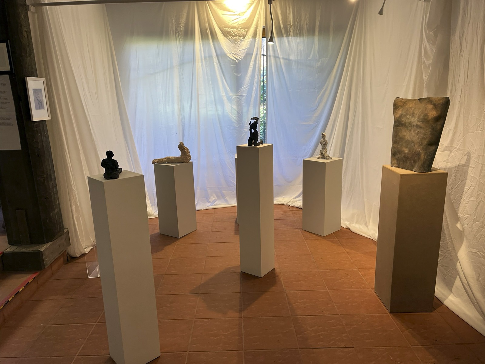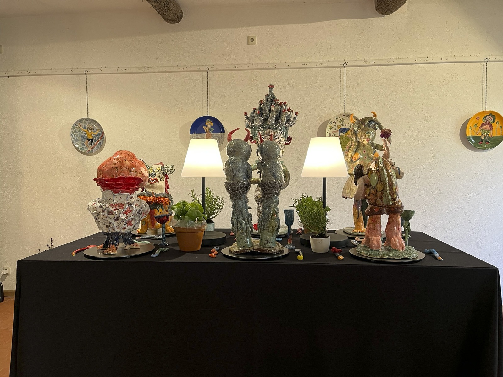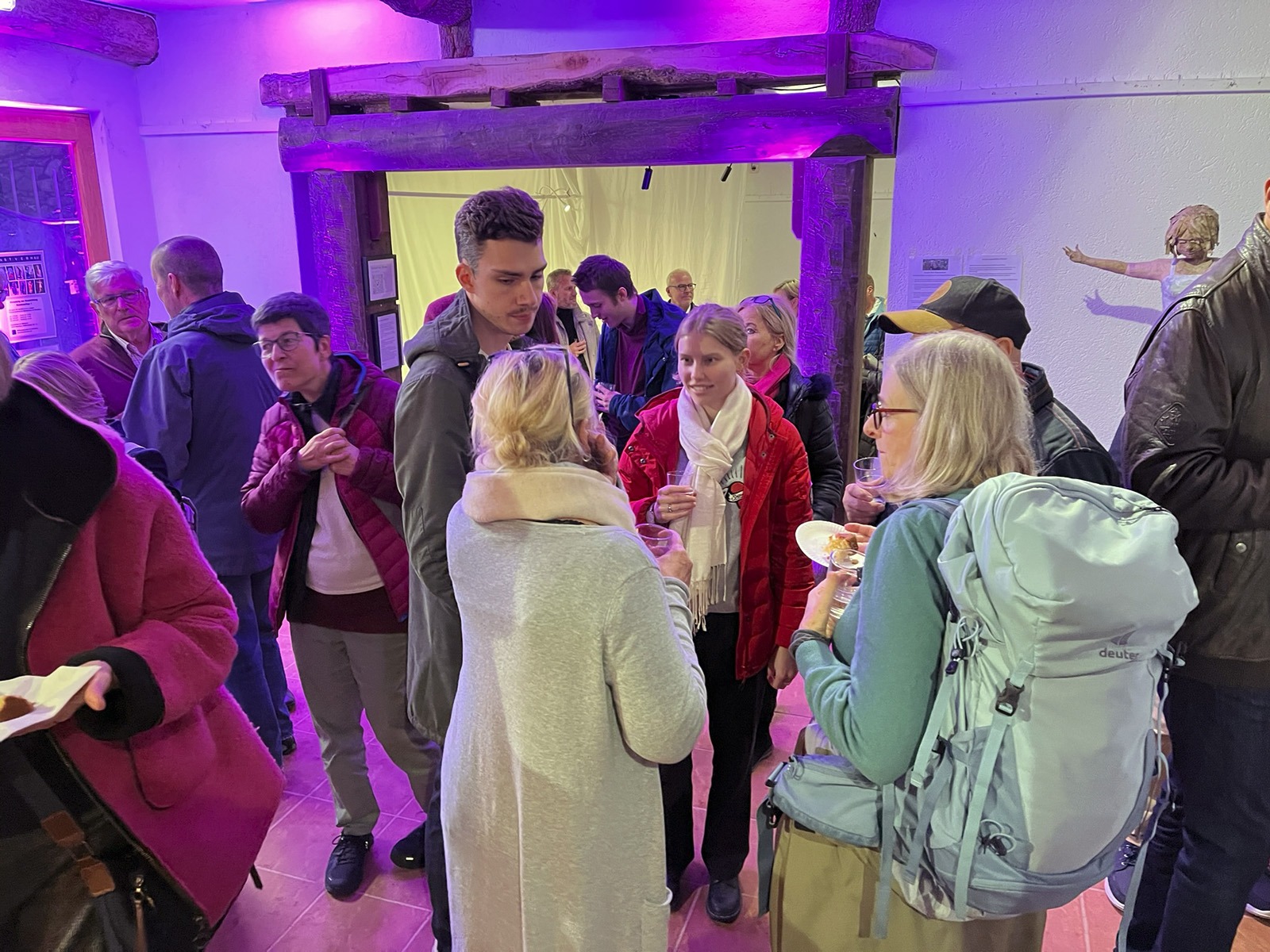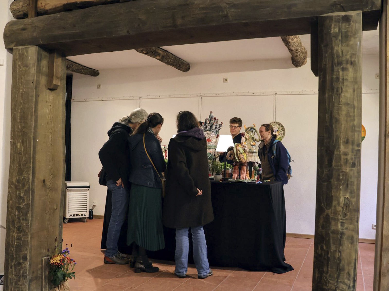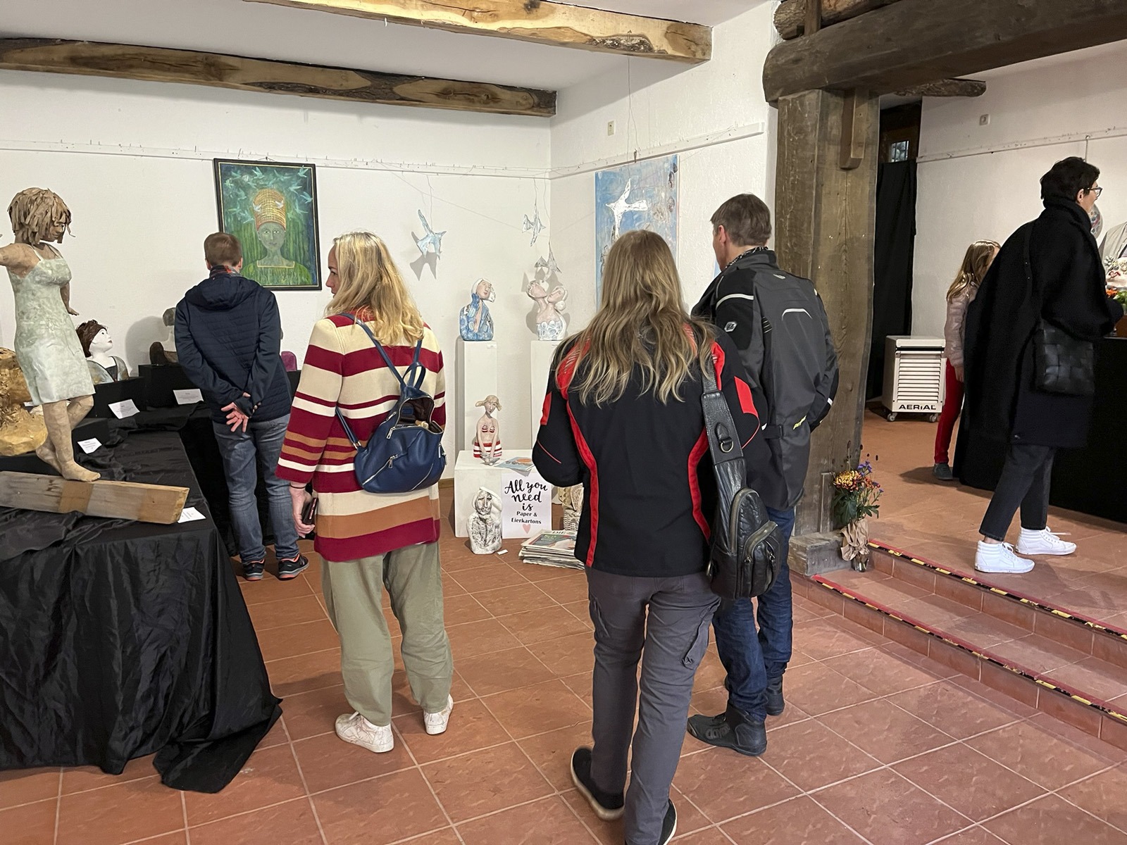 Fünf eigenständige und unterschiedliche Künster:innen. In der Gruppe Kunstverhau ist gerade darum Raum für Anregung und Resonanz. Und mit dieser Resonanz kann – wie wir heute sehen können – auch in der grobstofflichen Welt Wirkung entstehen: Dieser phantastische Ausstellungsraum für Skulpturen:Räume steht uns offen, wir haben Licht, die Sockel sind herangetragen, Schweiß ist geflossen, Plakate und Einladungen haben sich materialisiert, wir haben Essen und Trinken und wir sind alle hier versammelt.