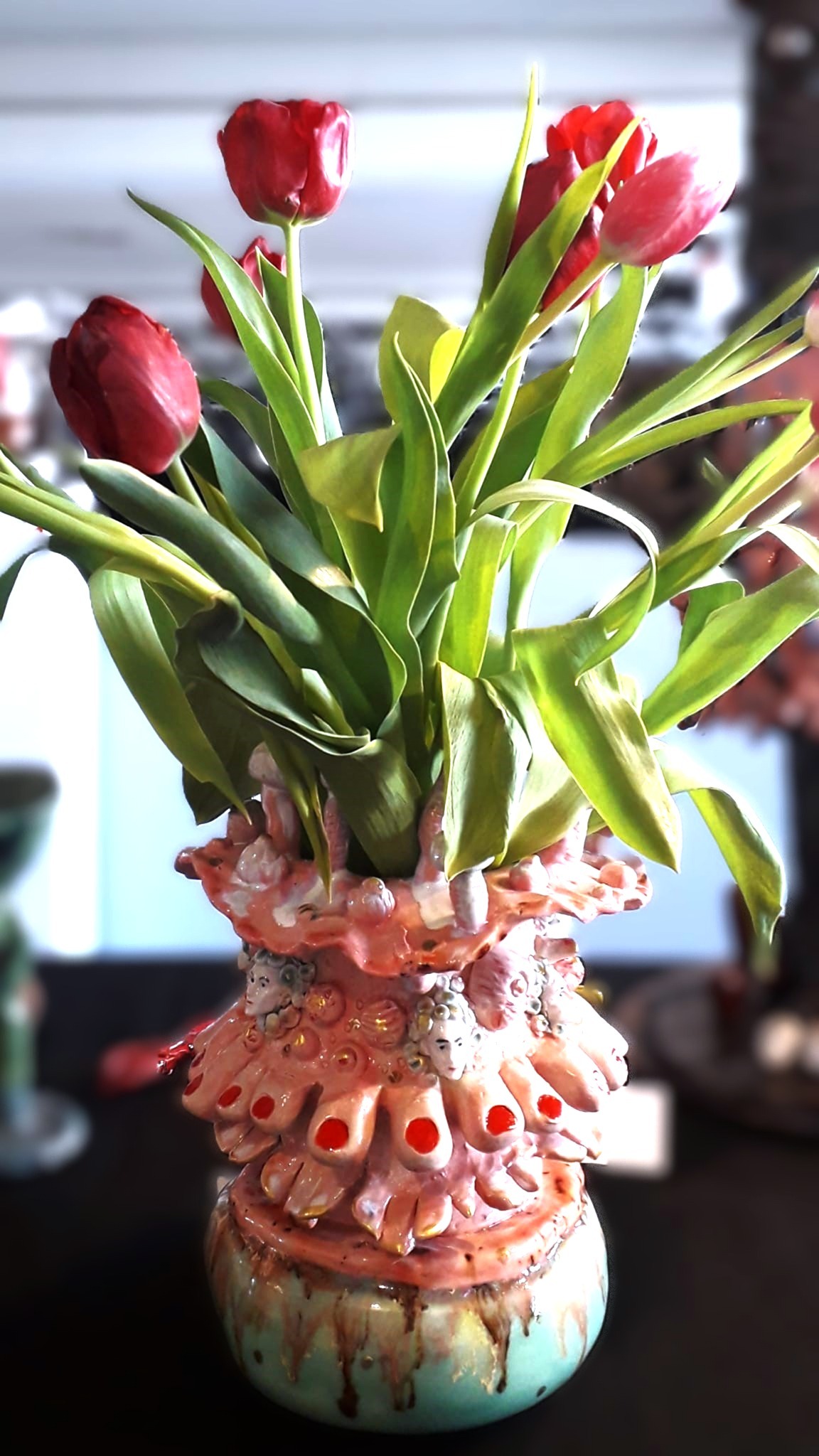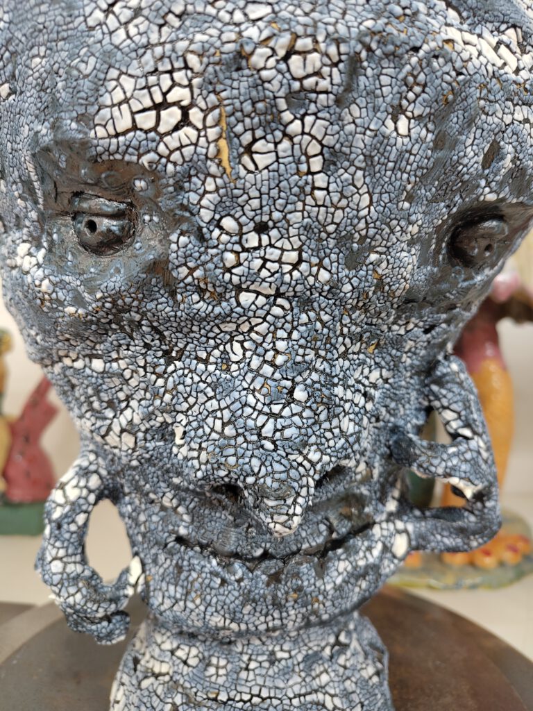 Ist das Erschaffen von Kreaturen die sich der Perfektion entziehen, gerne skurril oder grotesk. Manchmal beginnen sie organisch langsam unter meinen Händen zu wachsen, manchmal setzen sie sich collageartig aus vorhanden Teilen zusammen, gehen oft mehrmals durchs Feuer, werden untereinander kombiniert und jedesmal bin ich erstaunt wer sich letztendlich zu erkennen gibt und meinen Freundeskreis erweitert.